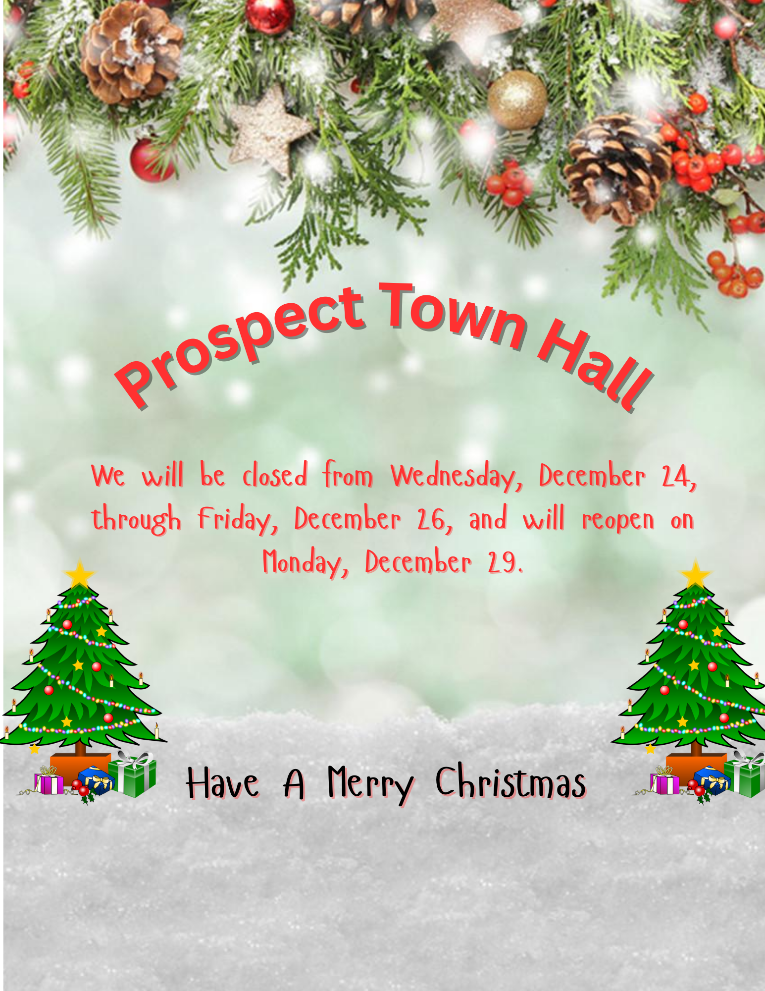 Christmas Closing: CEQ Notice: Connecticut State Council on Environmental Quality The December 16, 2025 edition of the Environmental Monitor has been published. It can be viewed at: portal.ct.gov/CEQ_Environmental_Monitor and is available in the town clerk’s office. The Environmental Monitor provides notice of proposed state actions, including transfers of state-owned land. In it are electronic links to additional information about the projects and instructions on how to submit comments. In this edition: Clinton, Coventry, Fairfield, Hamden, Kent, Manchester, Mansfield, New Haven, Preston, Windsor Locks, and Woodbridge. The next edition of the Environmental Monitor will be published on January 6, 2026. December Senior Center Newsletter: The Senior Center November Newsletter is now available. Please see the link to view. https://cdn.townweb.com/townofprospect.gov/wp-content/uploads/2025/12/December-2025.pdf
